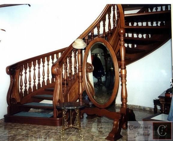 Сегодня мы расскажем именно про изготовление гнутых лестниц из массива дерева.